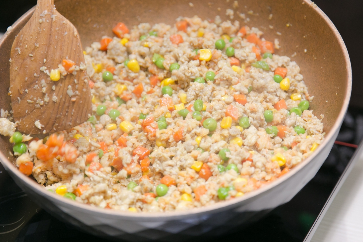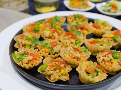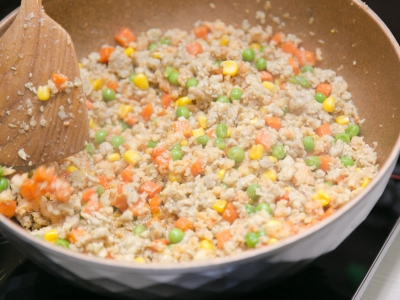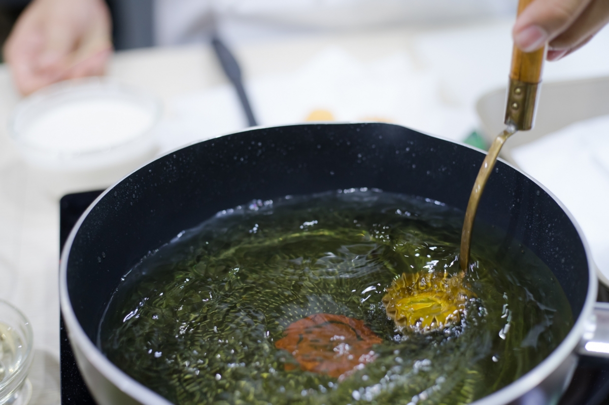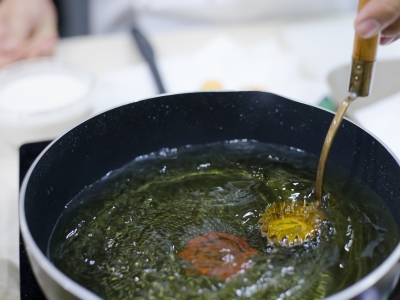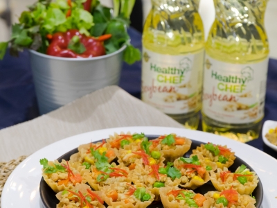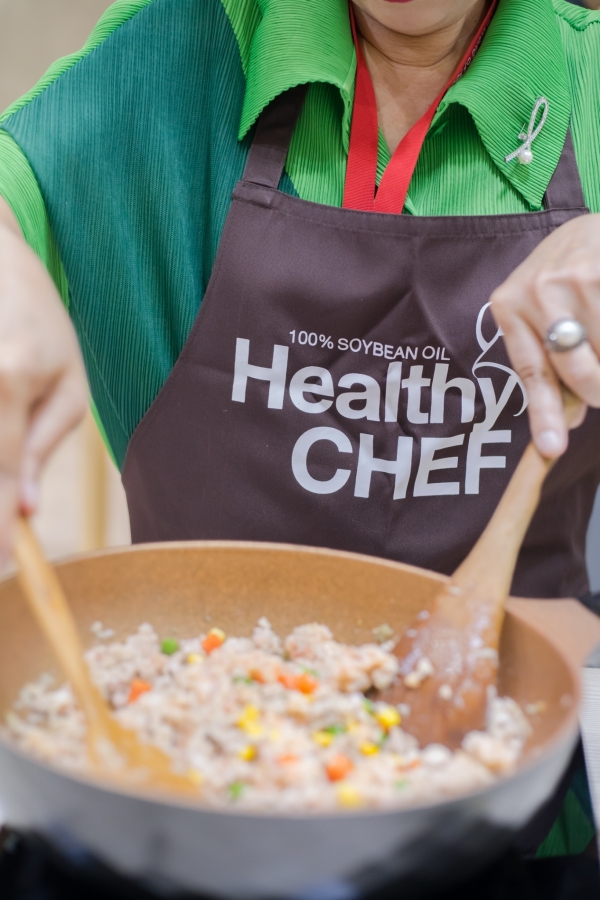 - Heat Healthy Chef® soybean oil to medium heat in a pan. Add pork ball with white rice noodle fry until golden crispy.