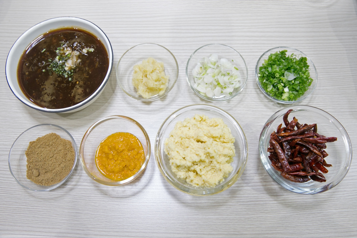 - Next, blend with the rest of the ingredients: yellow pepper, habaneros, Coriander seed, and garlic.